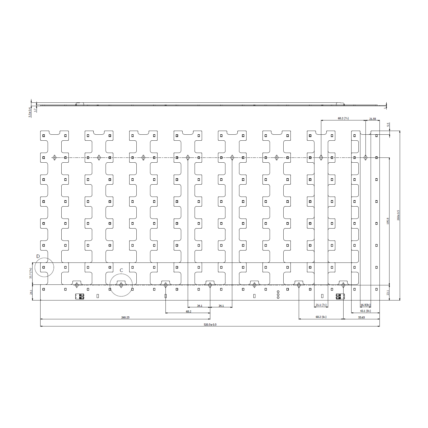 - Länge: 520,5mm/Breite: 260mm/Höhe: 5,5mm